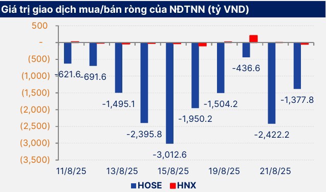 Theo phân tích của SHS Research, việc khối ngoại liên tục bán ròng trong bối cảnh thanh khoản lập đỉnh phản ánh hai vấn đề: sự thận trọng trước đà tăng quá nóng và lo ngại rủi ro điều chỉnh ngắn hạn. Khi vốn ngoại rút lui, thị trường càng phụ thuộc nhiều hơn vào dòng tiền trong nước – vốn giàu tính đầu cơ, dễ đảo chiều và thiếu bền vững.