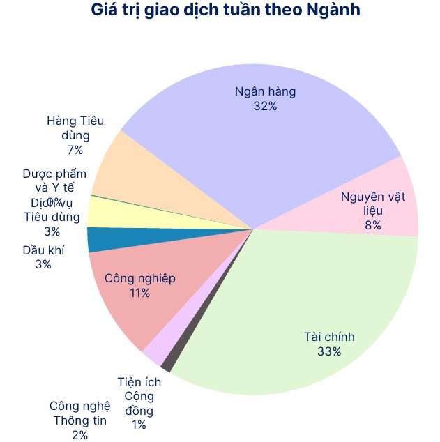 Về ngành, bức tranh tuần qua thể hiện sự phân hóa rõ nét. Ngân hàng nổi bật nhất, tăng 4,6% và tiếp tục giữ vai trò dẫn dắt nhờ kỳ vọng tăng trưởng tín dụng cùng triển vọng lợi nhuận quý III khả quan. Dầu khí cũng ghi nhận mức tăng 3,5%, hưởng lợi từ giá dầu thế giới duy trì cao.
