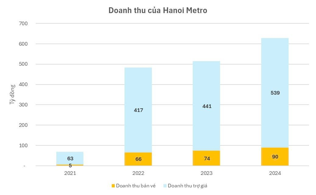 Tính từ năm 2021, là mốc metro Cát Linh-Hà Đông chính thức vận hành (tháng 11/2021), doanh thu của Hà Nội Metro liên tục tăng trưởng qua các năm.