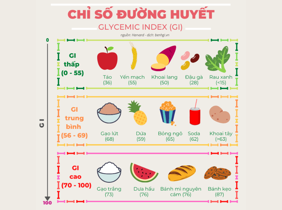 ==> Xem thêm bài viết: Chỉ số đường huyết GI: Cách xác định thực phẩm có đường huyết cao và thấp.