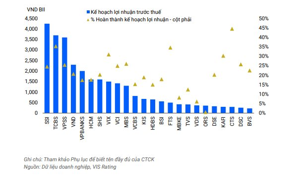Phần lớn các công ty chứng khoán trên đà hoàn thành kế hoạch lợi nhuận. (nguồn: VIS Ratings)