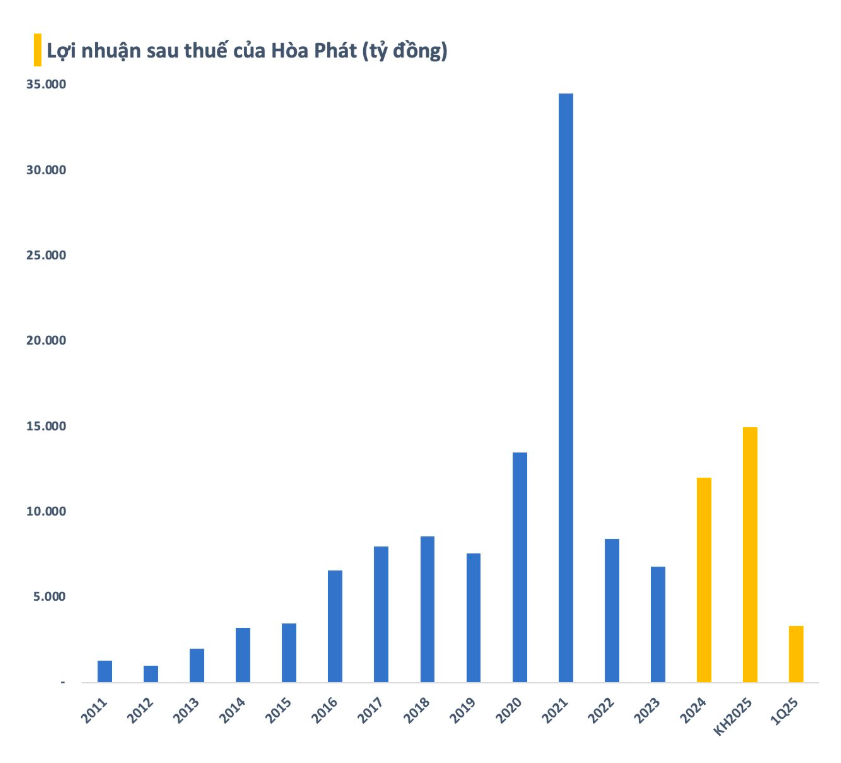 Năm 2025, Hòa Phát trình cổ đông kế hoạch kinh doanh khá tham vọng với mục tiêu doanh thu đạt 170.000 tỷ đồng, tăng khoảng 21% so với thực hiện năm ngoái, và là mức cao nhất từ trước tới nay của doanh nghiệp này. Mục tiêu lợi nhuận sau thuế đạt 15.000 tỷ đồng, tăng gần 25% so với thực hiện năm 2024. Như vậy sau 3 tháng, doanh nghiệp đã hoàn thành khoảng 22% kế hoạch doanh thu và 22% kế hoạch lợi nhuận cả năm.