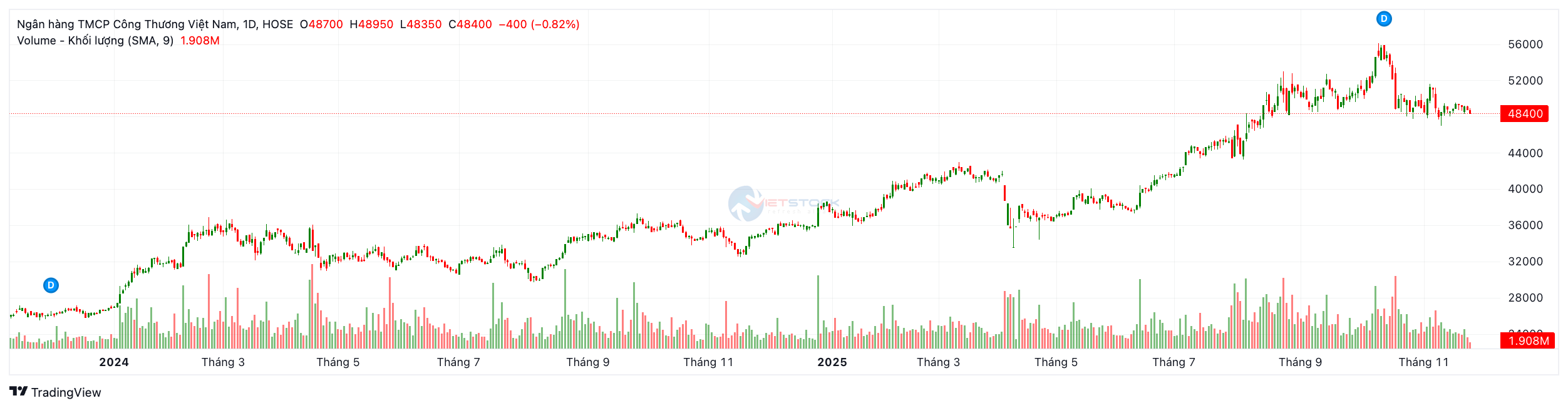 Giai đoạn 2024 – 2025: Chu kỳ tăng trưởng mới và Đỉnh lịch sử 56,050₫