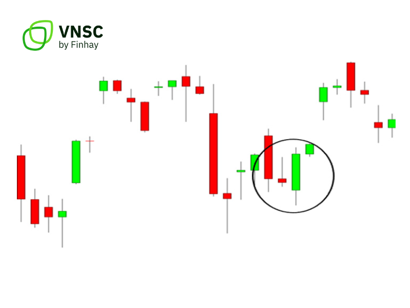 - Giá đóng cửa của nến 2 cao hơn giá mở cửa của nến 1.