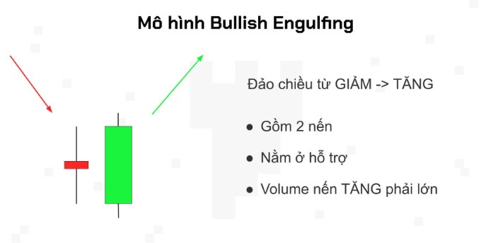 Trong phân tích kỹ thuật theo trường phái Price Action, nến Bullish Engulfing (hay còn gọi là mô hình nến nhấn chìm tăng) được xem là một trong mô hình nến đảo chiều tăng tin cậy nhất. Mẫu hình này bao gồm hai cây nến xuất hiện ở cuối một chu kỳ giảm giá, báo hiệu sự suy yếu của lực bán và sự trỗi dậy mạnh mẽ của lực mua.