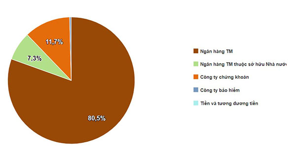 Tài sản quỹ chủ yếu phân bố trong lĩnh vực ngân hàng (chiếm tới hơn 80%), sau đó tới chứng khoán, bảo hiểm, tiền và tương đương tiền. Cụ thể như hình dưới đây.