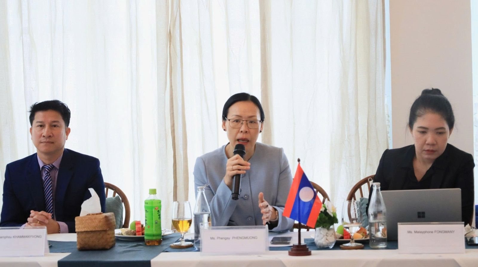 Bà Phengsy Phengmuong, Tổng thư ký LSCO, trao đổi tại buổi họp